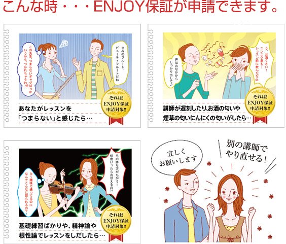 レッスン内容はもちろん、価格の 安さや楽器の豊富さだけではない、 お客様の役に立つ新たな価値として、 補講料金無料を提供する 事に辿り着きました。